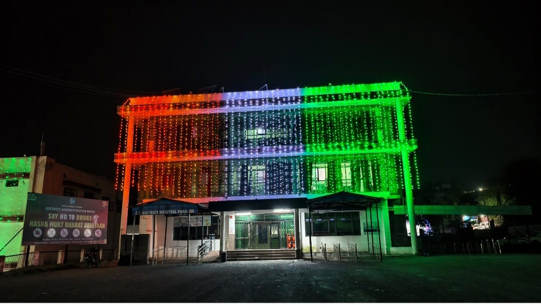 ILLUMINATION OF DH REASI. in continuation with various activities regarding celebration 🎇 of 79th Independence day, Illumination of DH Reasi was done on12/08/2025